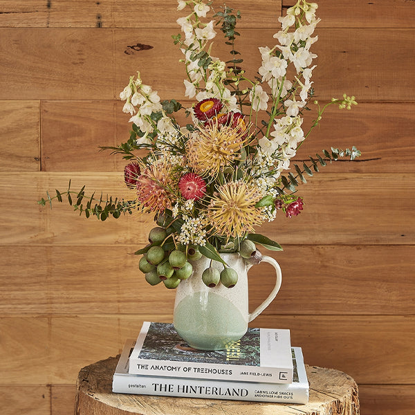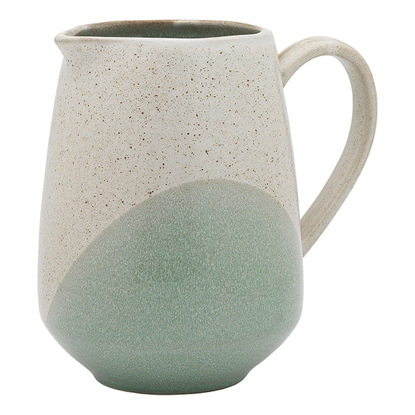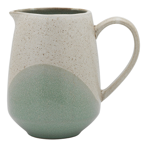 The organic pebble-like design of this Jug is hand-painted in a restful sage hue, finished with an all-encompassing cinnamon speckle in a reactive gloss glaze.