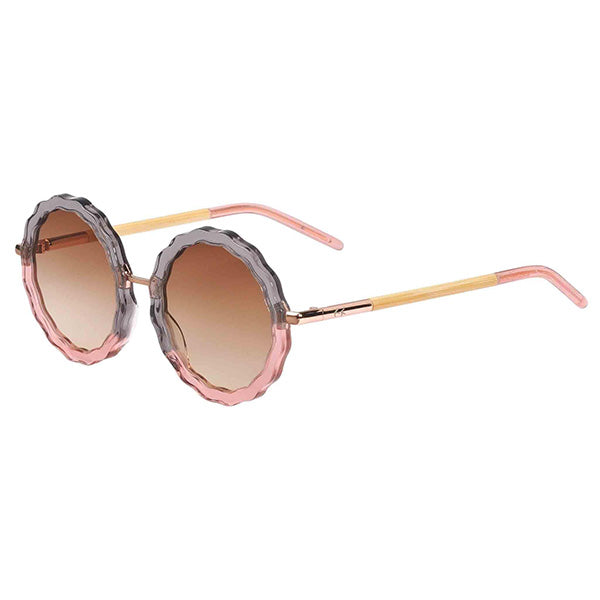 The hand crafted daisy shape in flattering peach to grey acetate is a complemented by customised rounded bamboo temples, finished with champagne acetate tips.