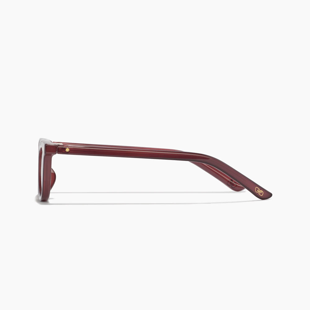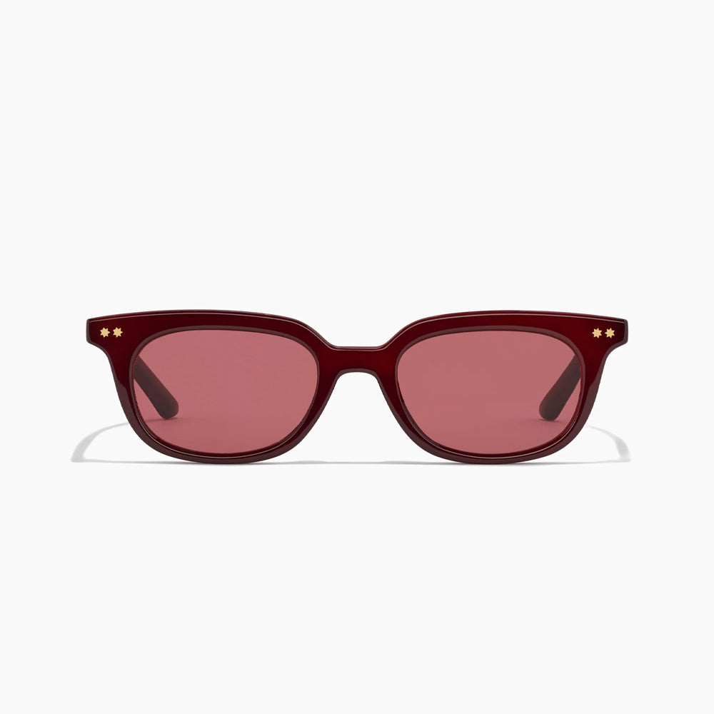 Meet bBates, a small, slick rectangular frame with sharp edges and clean lines. This deep burgundy sunglass with monochromatic burgundy lenses takes design cues from the classic wayfarer but with completely modernised proportions. Bates is an essential square-rectangle everyday frame to elevate any outfit and is flattering to all face shapes.