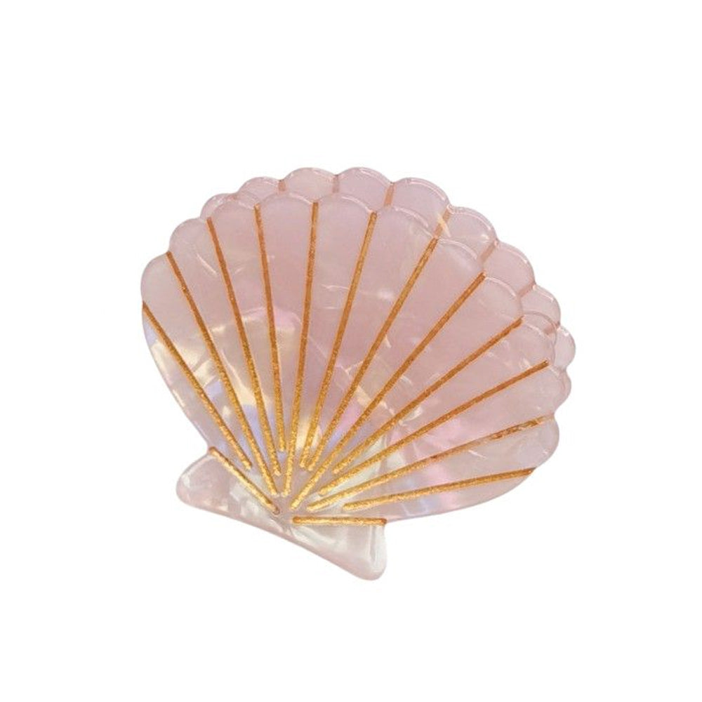 The Clamshell Claw Clip is the playful splash your hair needs. Featuring a shimmering, translucent pink body with gold details, it'll add a little ocean joy to your outfit.