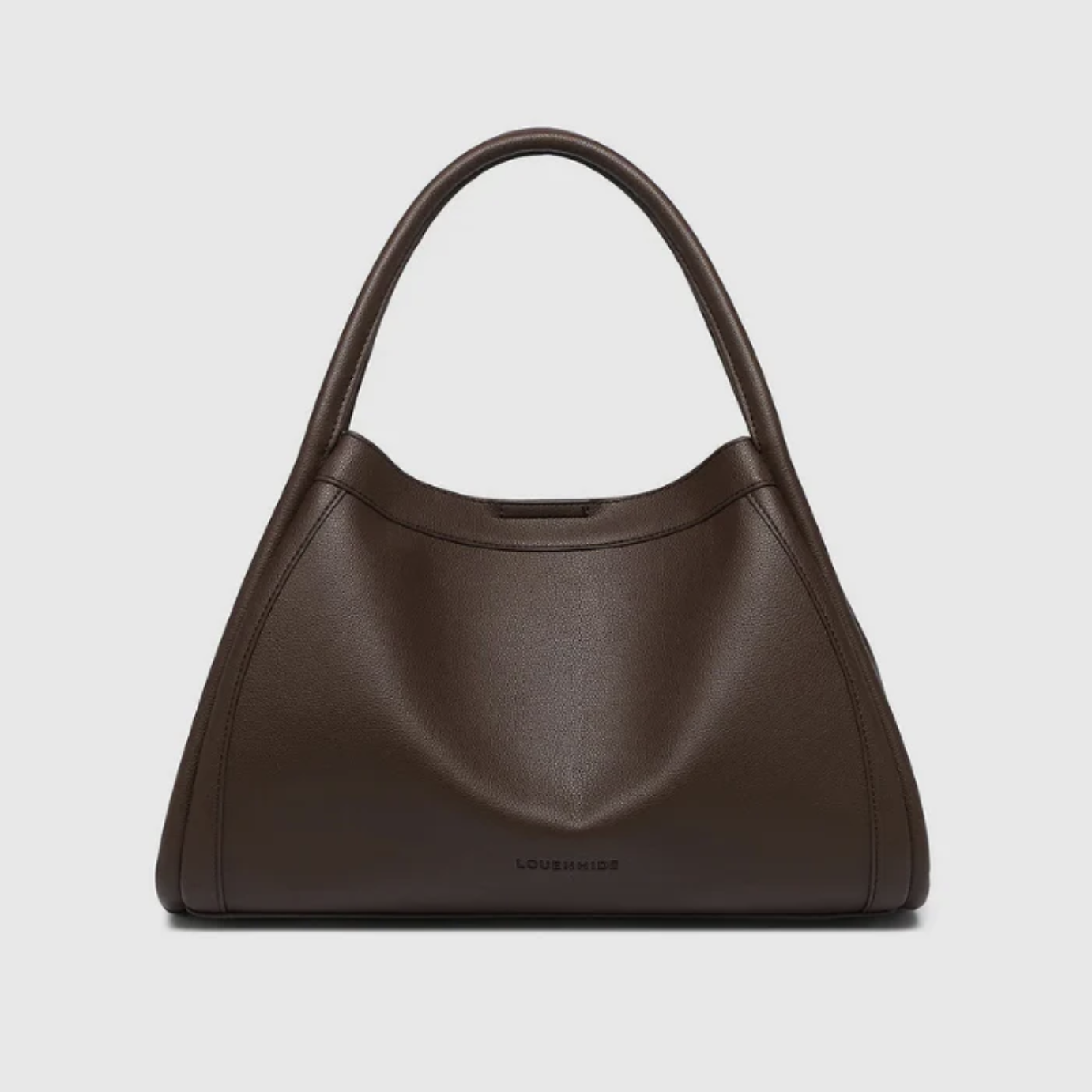 Following the popularity of Louenhide's beloved Sutton style comes the Mini Sutton Shoulder Bag - reimagining the classic slouchy silhouette in a size perfectly suited to lighter days. Small in size but big on style, it's designed in soft yet structured rich chocolate vegan leather, she’s elevated with contrast top-stitch accents for a subtle point of difference.