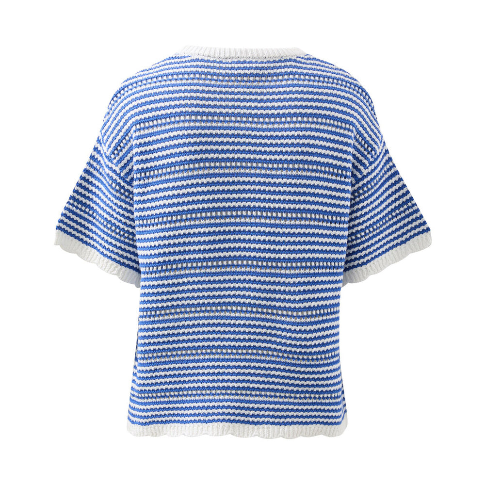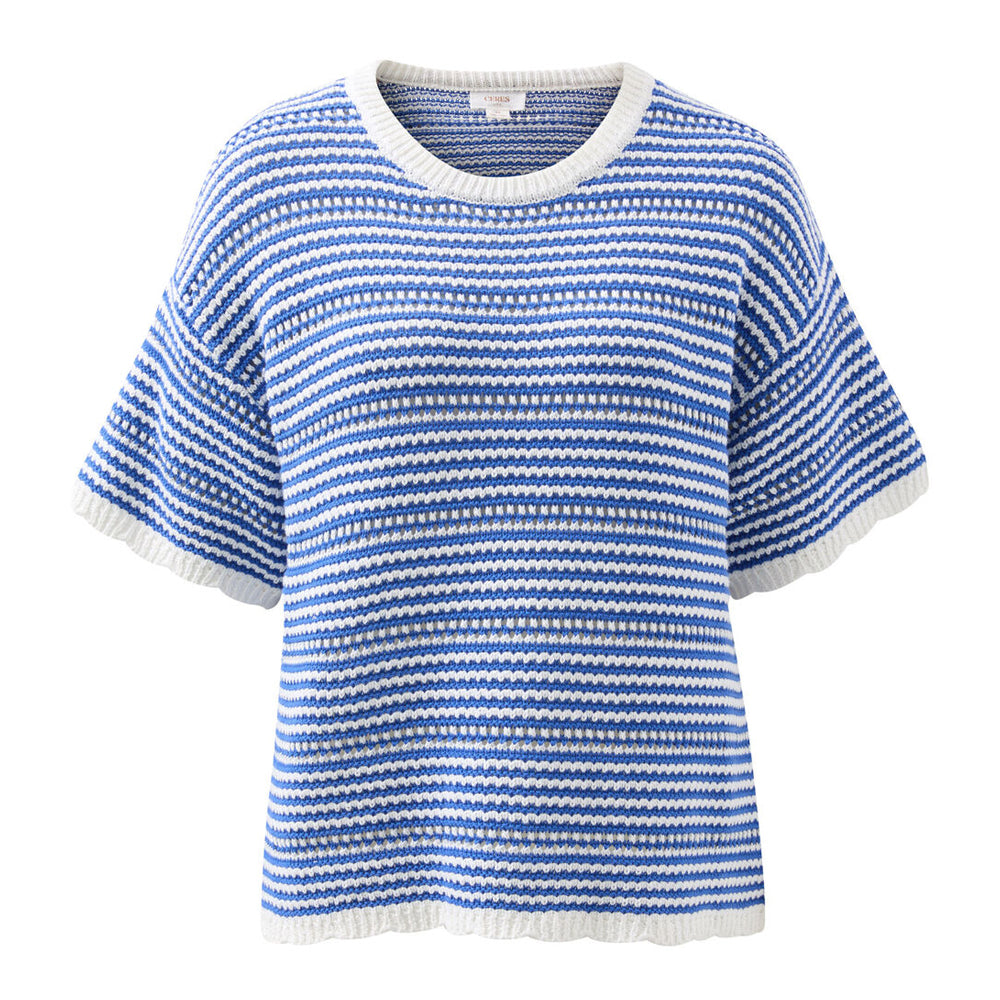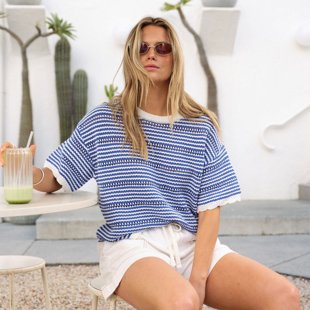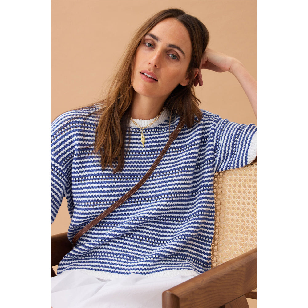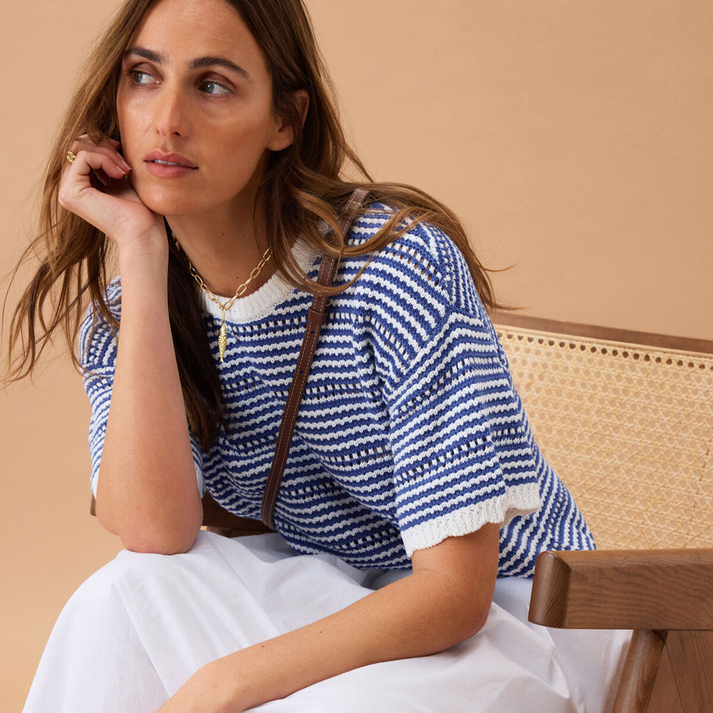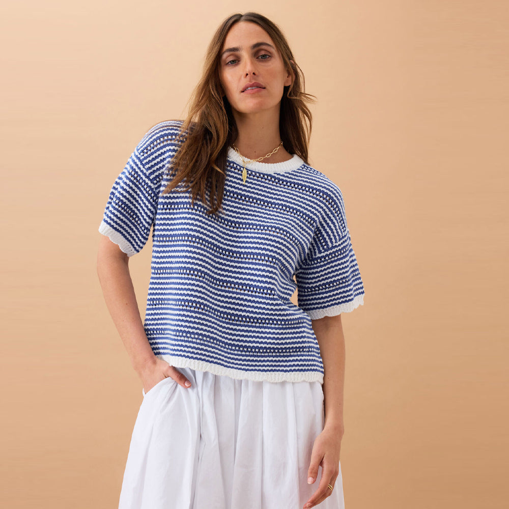 Nina Boxy Knit Tee - Summer Blue Stripe