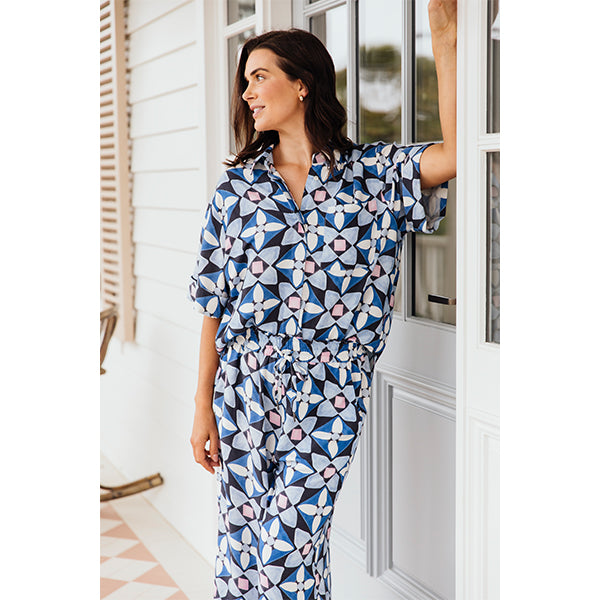 The Painted Tile Shirt is unapologetically bright, loud and fun. Mix and match with basics to inject some colour and a playful pop of print into your wardrobe. Pair with Painted Tile Pant to create an on trend set.
