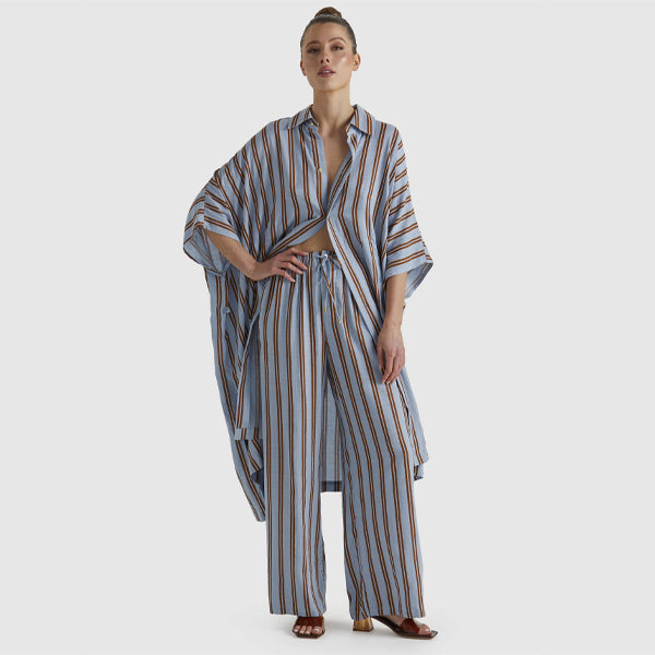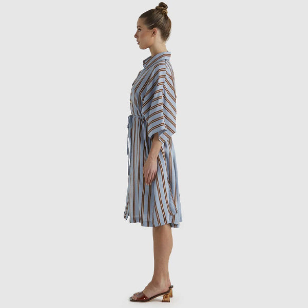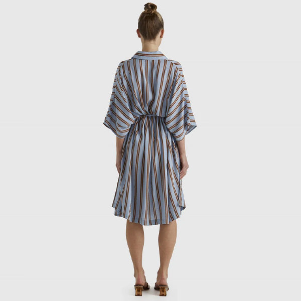 Grounded Shirt Dress - Blue + Tobacco Stripe