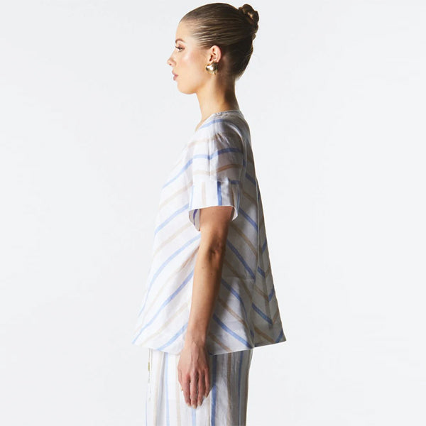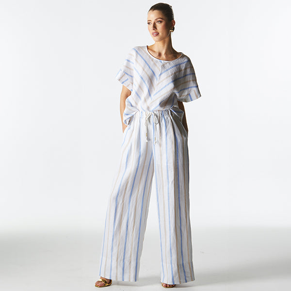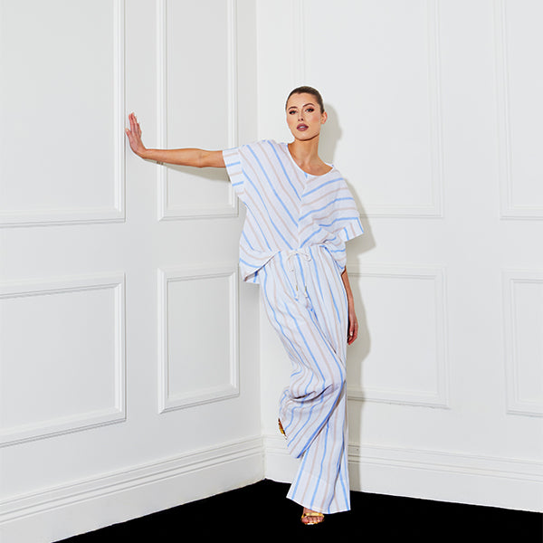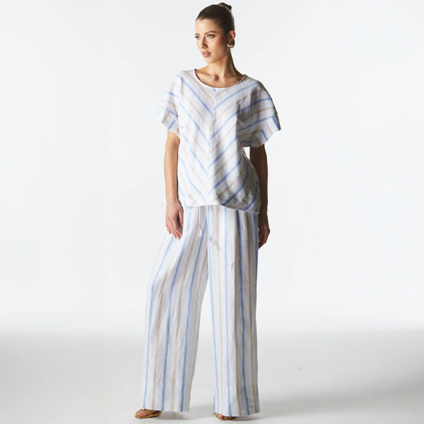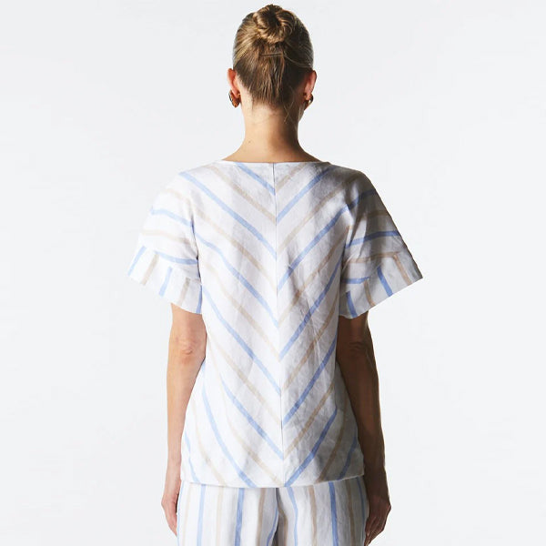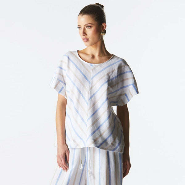 Sophisticated and airy, the Poolside Boxy Top features a wide band on sleeves and hem with a natural chevron detail. This oversized top is effortlessly polished, perfect for laid-back sophistication.