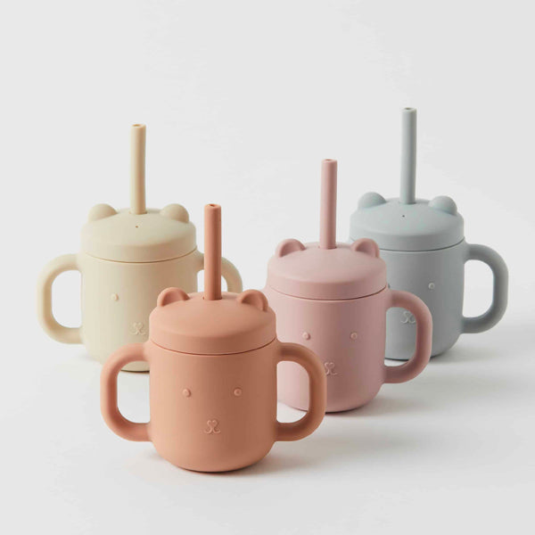 In an adorable bear design, the Henny Silicone Sippy Cup will be your little one's new favourite to drink from. This sippy cup comes with two handles for easy grip and a soft, flexible straw that is safe for bub to chew on. Switch to silicone and say goodbye to plastic and broken cups.
