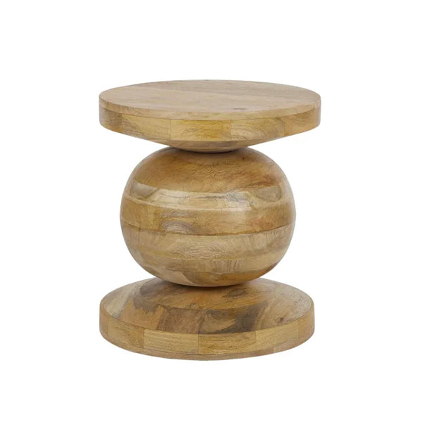 The geometric Lisbon Wood Side Table displays a spherical centre balanced between the top and base, showcasing beautiful natural timber markings.