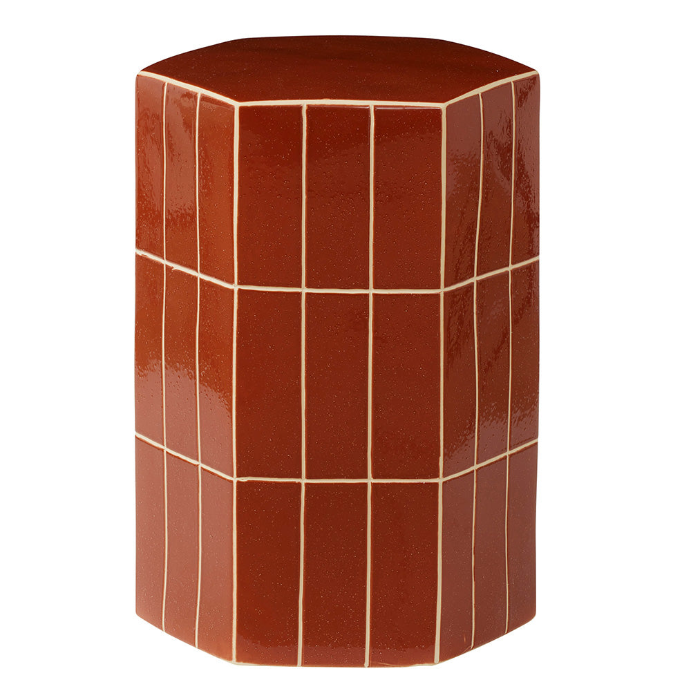 Featuring rich rust tiles with contrasting grout, the Seidler Stool nods to a mid-century aesthetic with a modern appeal. Its hexagonal column shape allows for practical surface area, whilst adding interest from every angle.