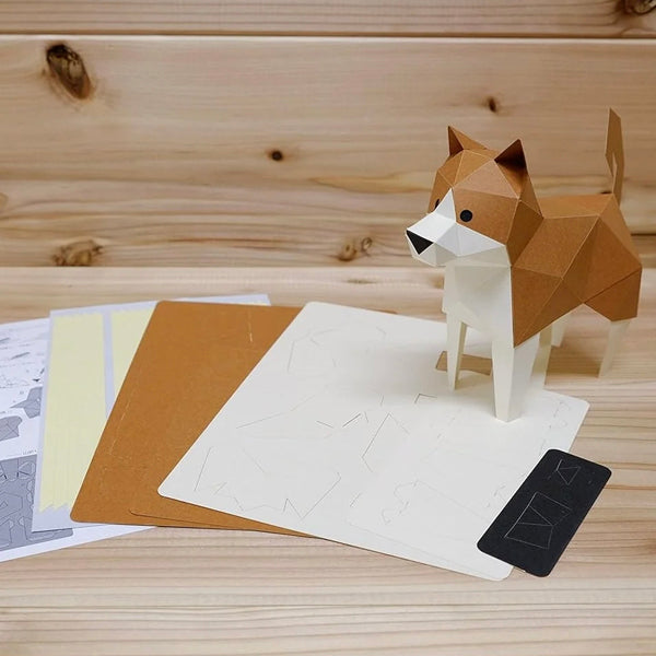 The pre-cut card templates fold, slot and tape together to create a super cute paper brown Shiba Inu you'd proudly display on your desk, shelf or little one's bedside. Not just for kids, this paper project is for all craft lovers.