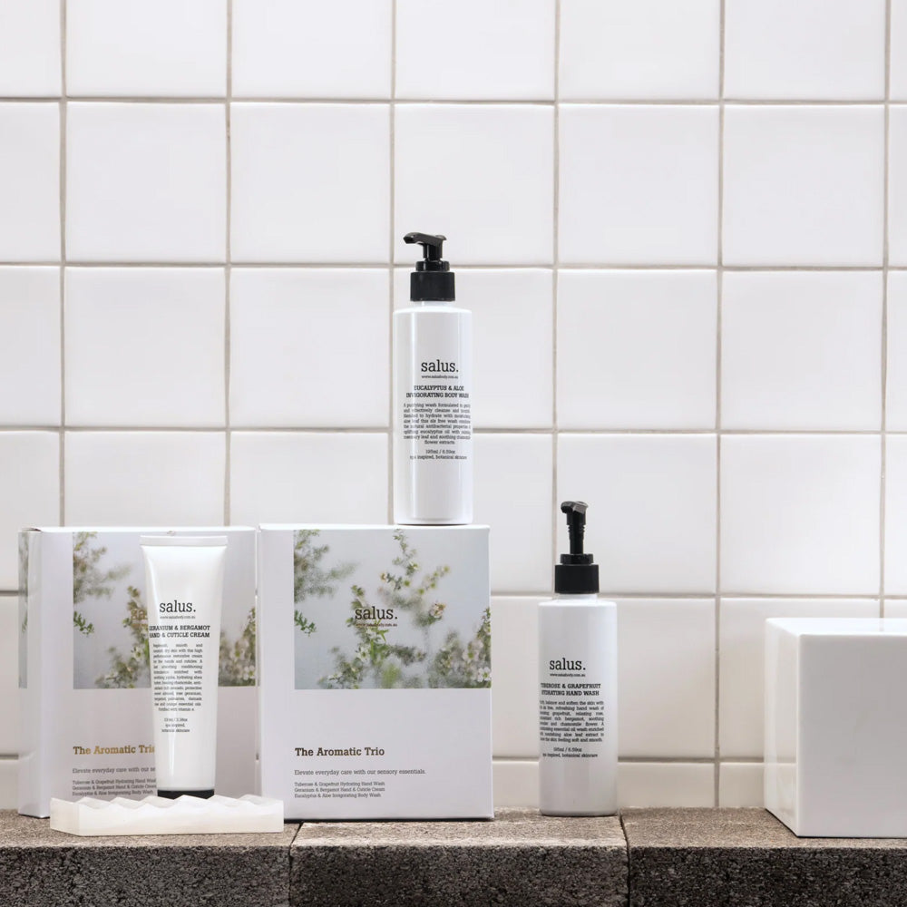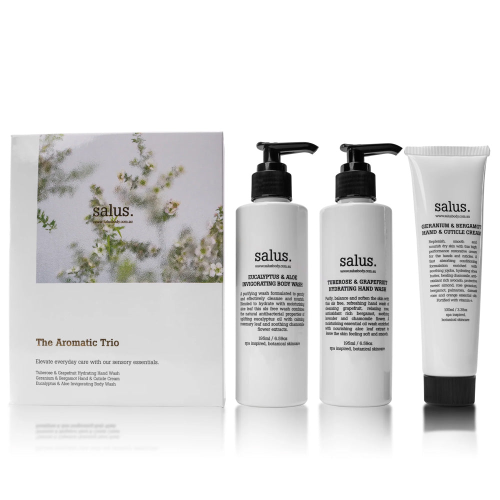 This set includes three beloved Salus products - a body wash, hand wash and cuticle cream - beautifully packaged for thoughtful gifting.