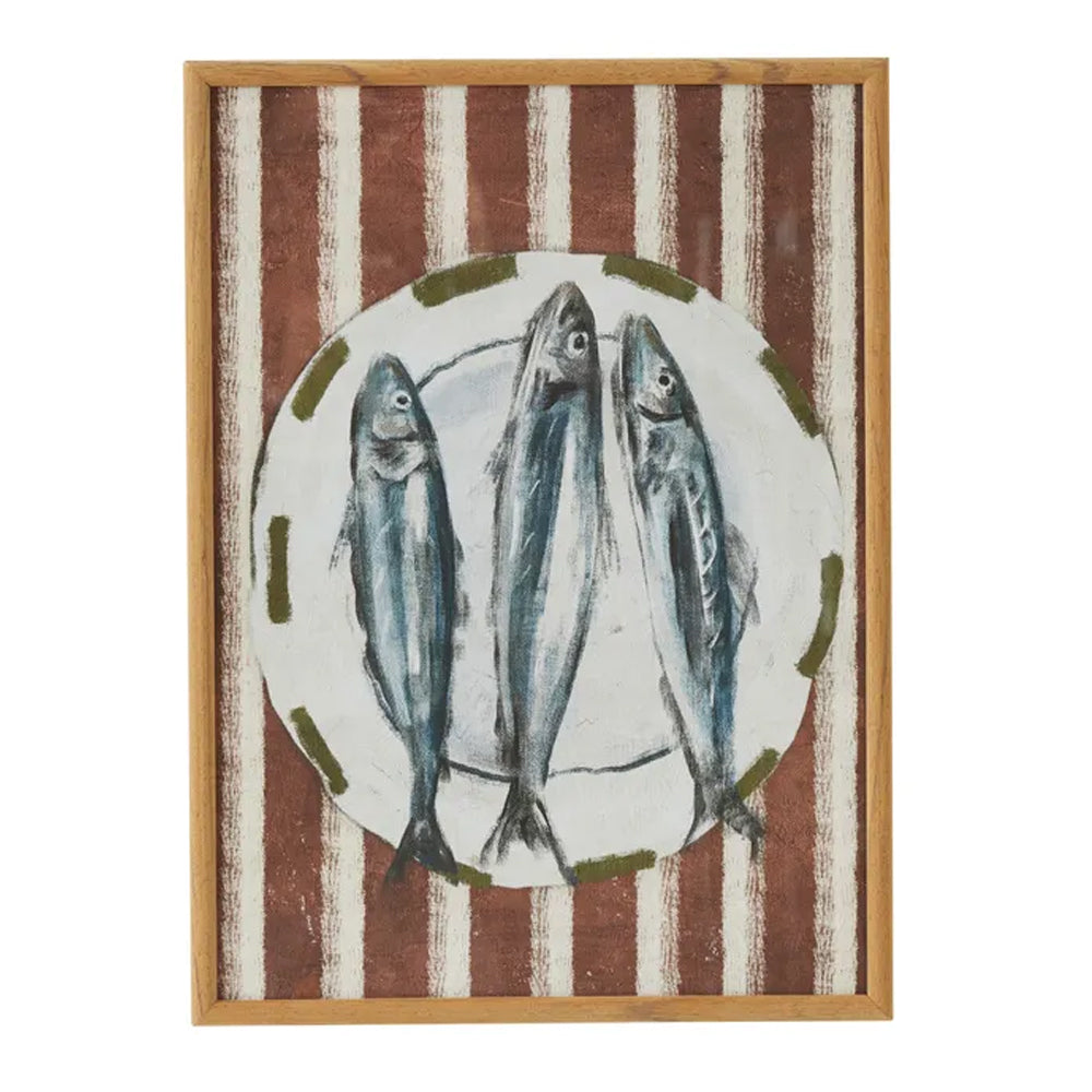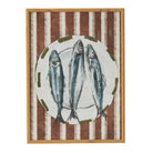 This summer dining inspired print pairs a still life, painterly style with bold pattern, featuring tones of blue, brown and green.