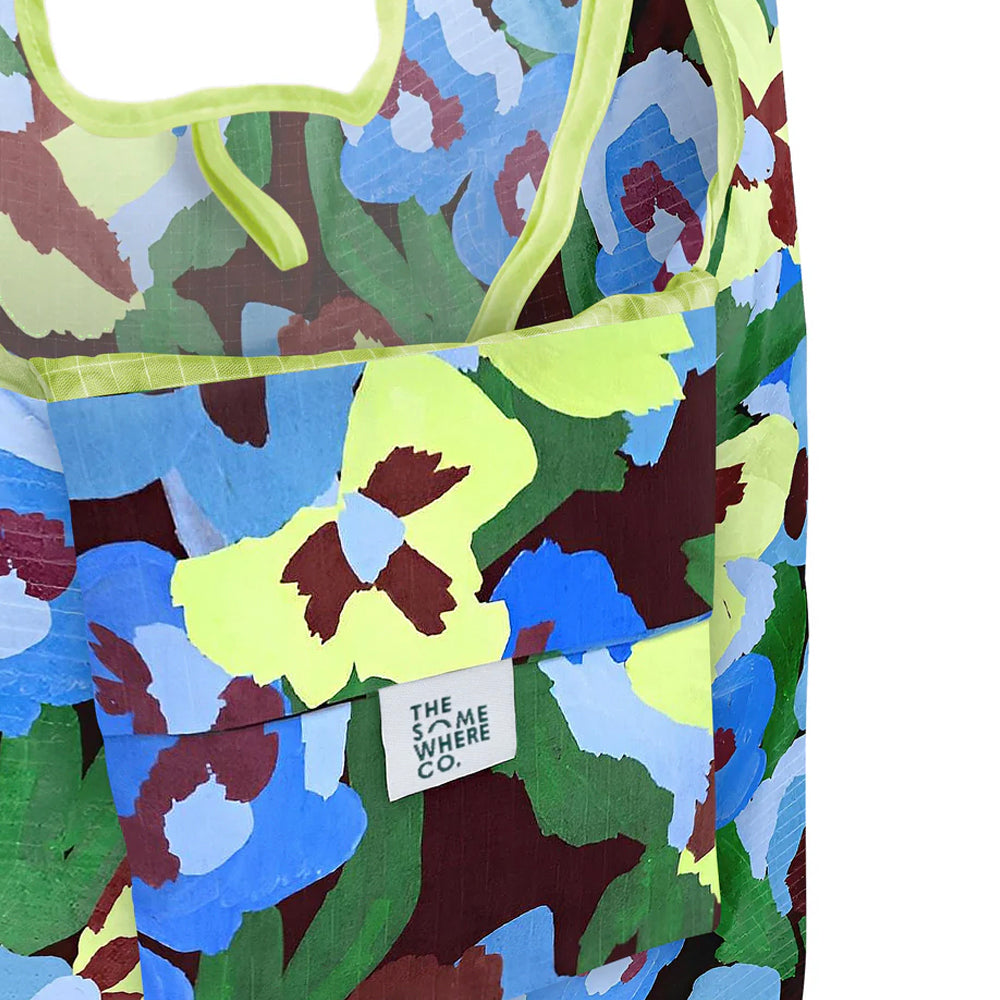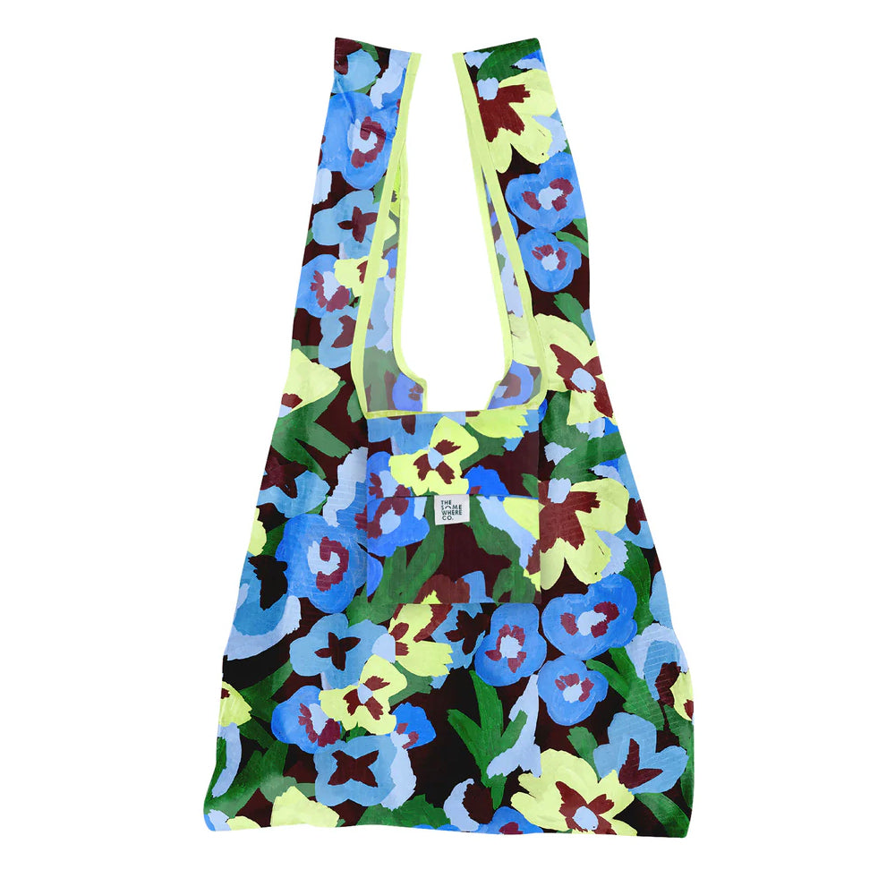 Made from ripstop nylon, The Somewhere Co's eco-friendly grocery bags are super strong and can hold over 20kgs – just in case you’re out buying some weights at the grocery store! The bespoke, artist-designed Pansy Patch print features punchy blue, green and burgundy florals on a black background, sure to make you the talk of the town.