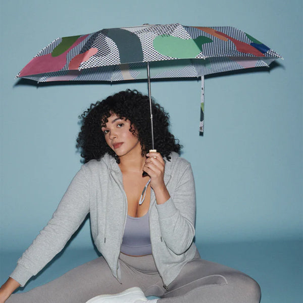 Each canopy is made of 100% recycled plastic bottles. This compact umbrella fits into any backpack or tote bag, making it a convenient travel companion. You can rely on its sturdy build to keep you dry during any downpour.