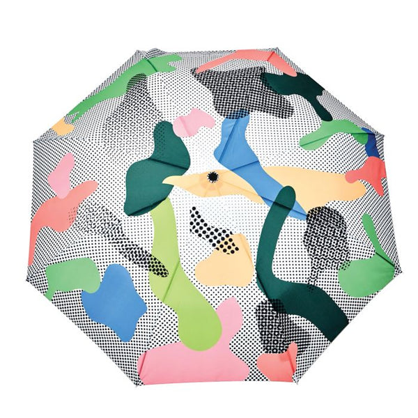 This design features dots and shapes overlapping to create a colourful, clashing canopy.