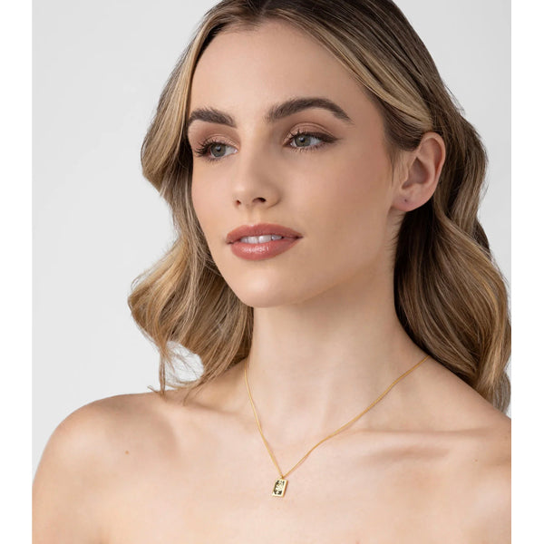 The Hari Silver Necklace features a lotus motif on a rectangular pendant, on a fine chain. A luxe heirloom style that will stay with you on your journey.