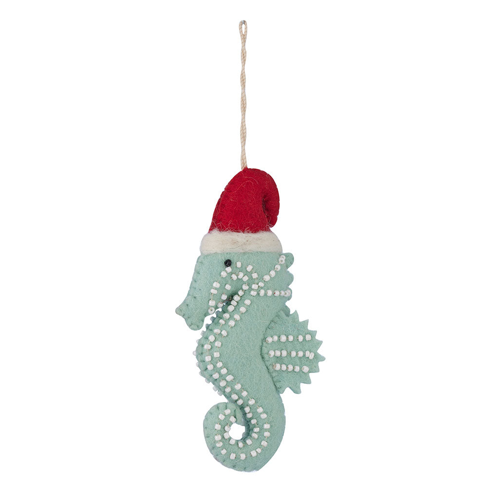 Looking proud as punch in their Santa hat, this majestic beaded Seahorse is ready to take pride of place on your Christmas Tree.