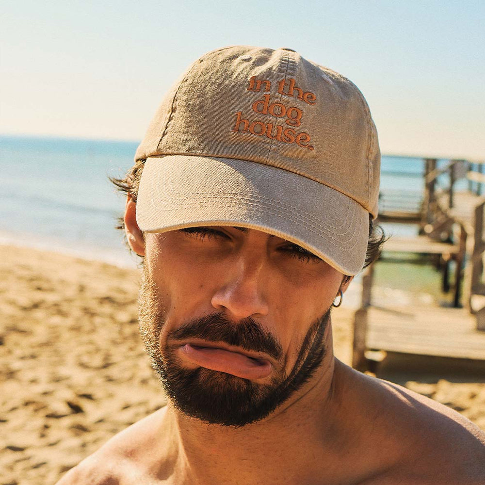Top off your look with the Dog House Cotton Cap in Brown. Made from soft, breathable cotton, this classic cap features a curved peak and an embroidered front. Lightweight and adjustable, it's perfect for sunny days at the park, weekend adventures, or adding a cheeky twist to your everyday outfit.