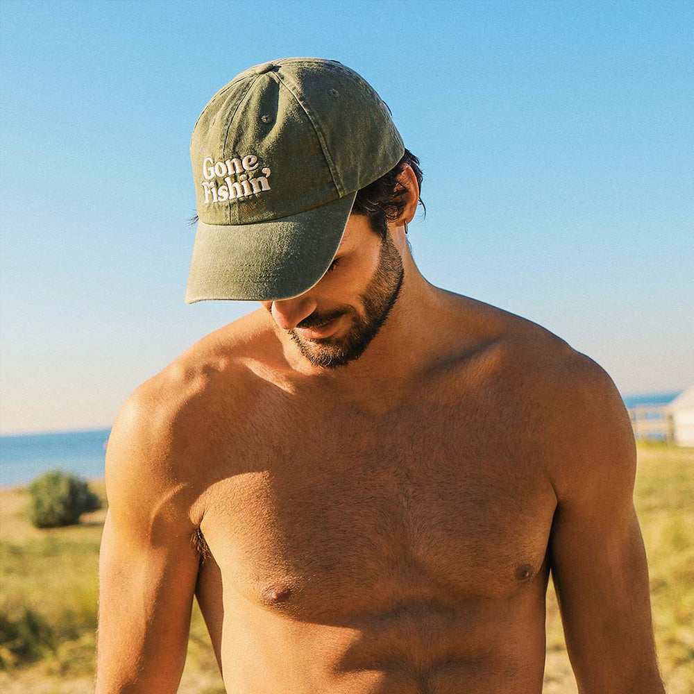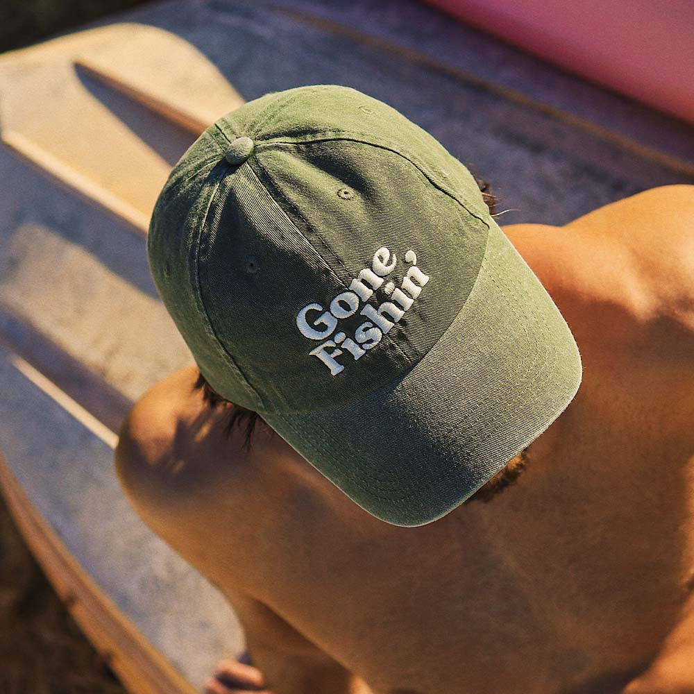 Add a playful edge to your sunny-day look with the Gone Fishin' Cotton Cap in Khaki. Crafted from soft, breathable cotton, featuring an embroidered slogan on the front and an adjustable fit for comfort. With a retro fade and feel, these effortlessly cool Skwosh caps are a cheeky summer essential, perfect for fishing days, bad hair days and every day in between.