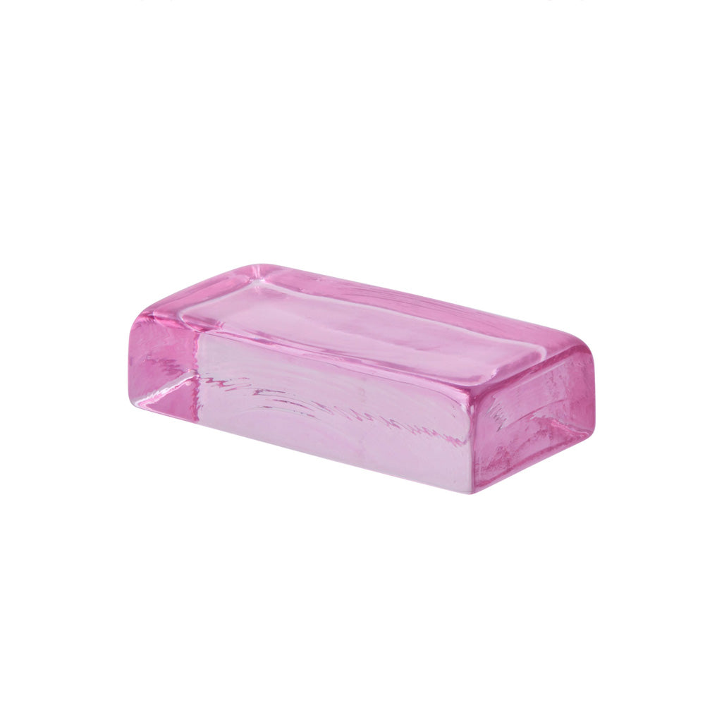 Hypermodern yet chic in bold pink, this glass brick can be used as a sculpture on your coffee table, book end for your shelving, platform to rest your favourite jewellery pieces on, or an eye-catching retail display.