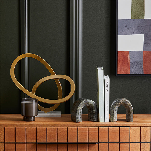 The Boyd Stone Book Ends are our staff pick for your must-have open shelving accessory.