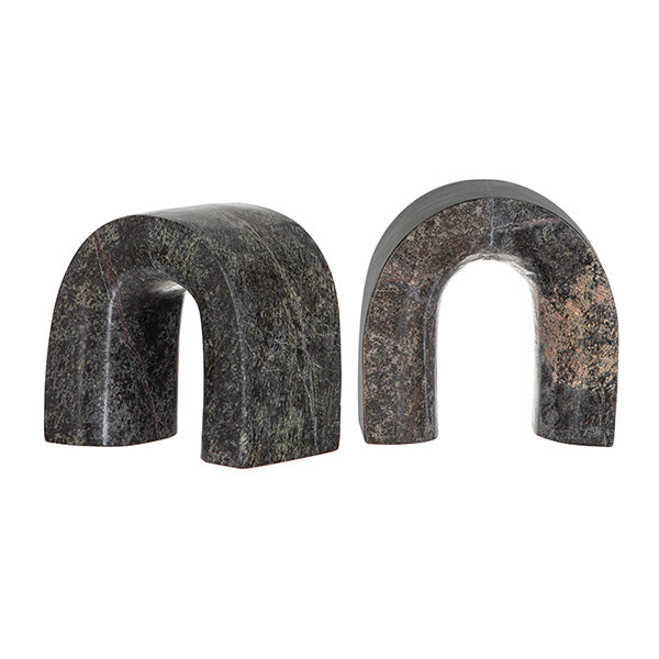 Their interesting asbtract shape allows flexibility in how they face. Place on opposite ends of a grouping of books to keep them upright, or simply group them together as a sculptural piece to display.