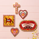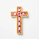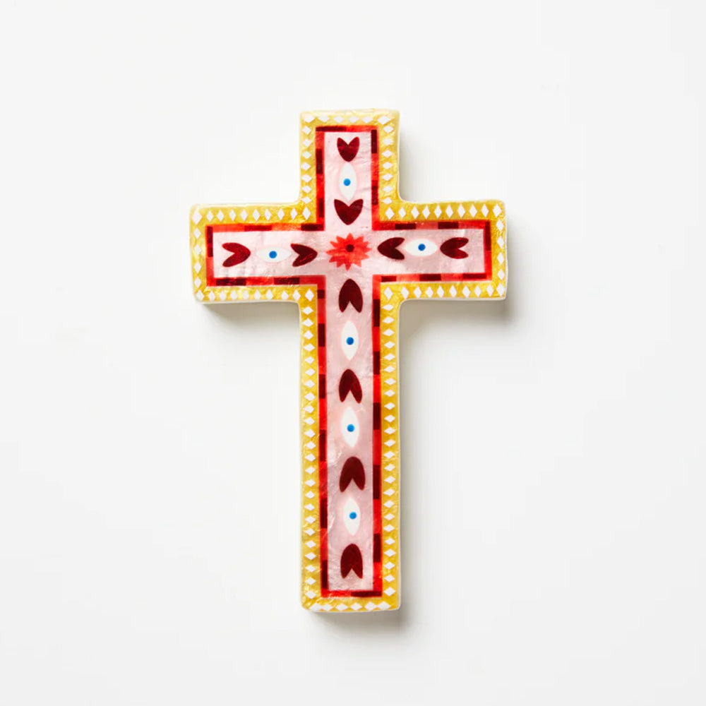 Simple, radiant and rich in feeling, the Fable Pink Small Cross is an everyday icon for any space. Featuring a soft blush base, stylised botanical details and bold red and yellow borders.