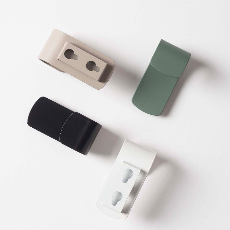 Embrace simple, modern design with this Koti Wall Hook. Made with bent steel, the hook provides a robust anchor point to safely hang clothing, towels, keys and other prized items. All elements of the design are carefully considered with keyhole mounting brackets and a mounting template to allow for perfect positioning. Available in multiple matte powder-coated colourways. The contemporary hook is designed in our New Zealand studio by David Moreland and Nikolai Sorensen.