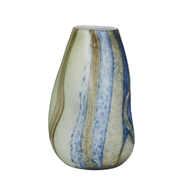The Leopald Glass Vase features stunning painterly strokes in greens and blues, and an interesting dimpled shape. A work of art in itself, it's sure to be a converstation piece.