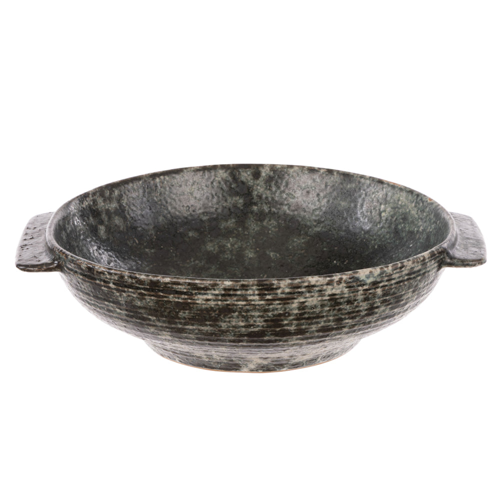 The Briggs Bowl looks and feels like a treasured artifact. Featuring a stunning mottled black glaze on a gently hammered porcelain surface and two flat handles, Briggs is textured and special. Ready for practical kitchen use, or to be admired as a sculptural piece.