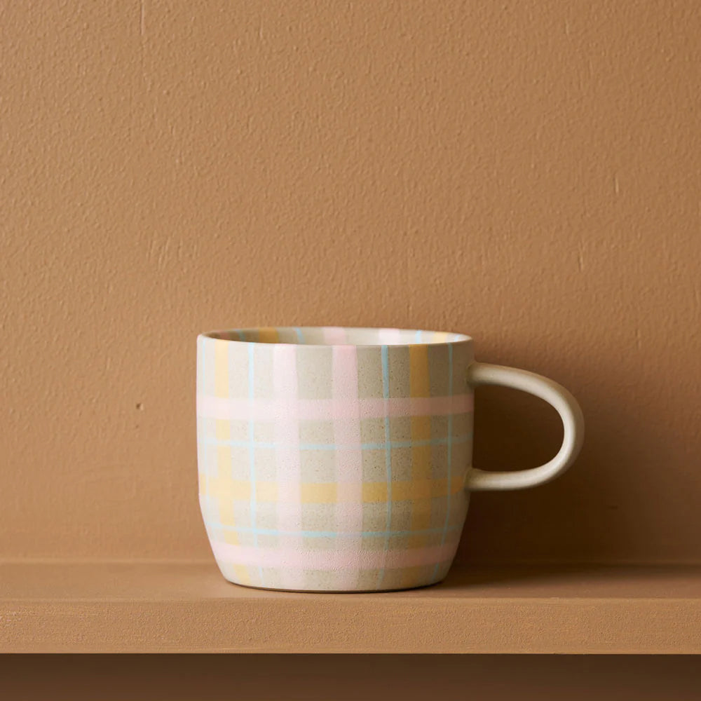 One of a range of playful designs beautifully hand-painted inside and out, the Neon Mug of Robert Gordon's Cat’s Pyjamas collection is truly charming. Featuring soft pink, blue and yellow check on a speckled base.
