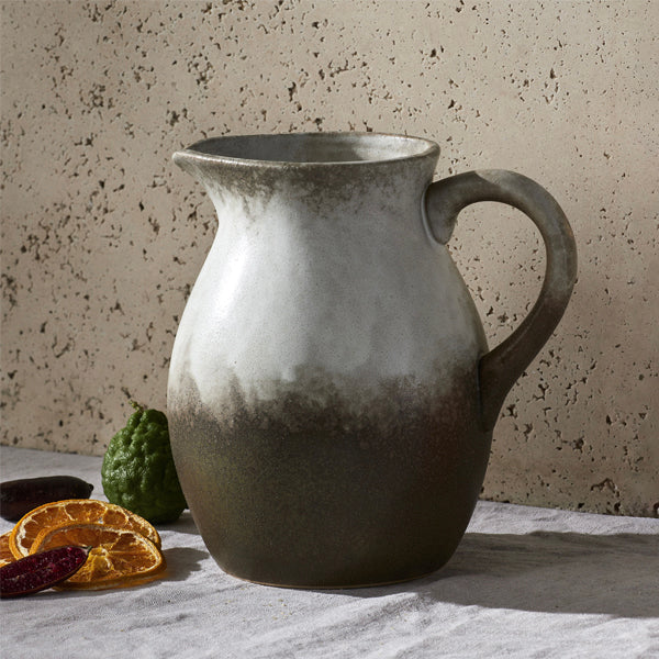 The Dusk Stoneware Jug features a stunning ombre glaze and organically curvy shape.