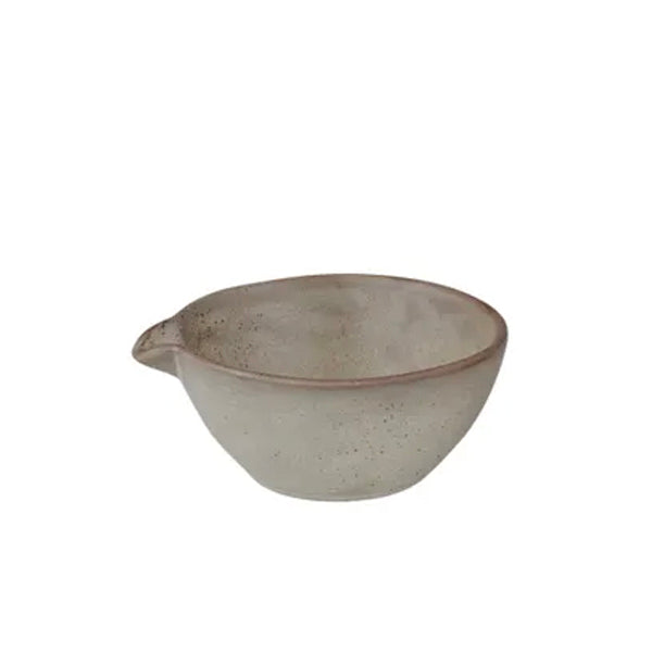 A beautiful piece to display solo or stacked, it has a spout along the rim making it practical for food preparation, pouring or serving.