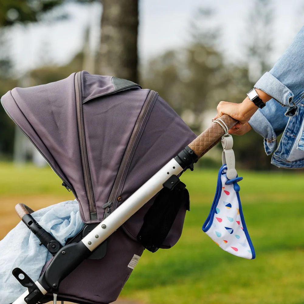 Flex comes with a large and durable elastic cord so you can easily attach to your bag, luggage, pram, and more. Its super strong magnet never loses holding power, and is great for carrying baby stuff, sports gear, water bottles, clothes, hats, headphones, and anything else that can hang.