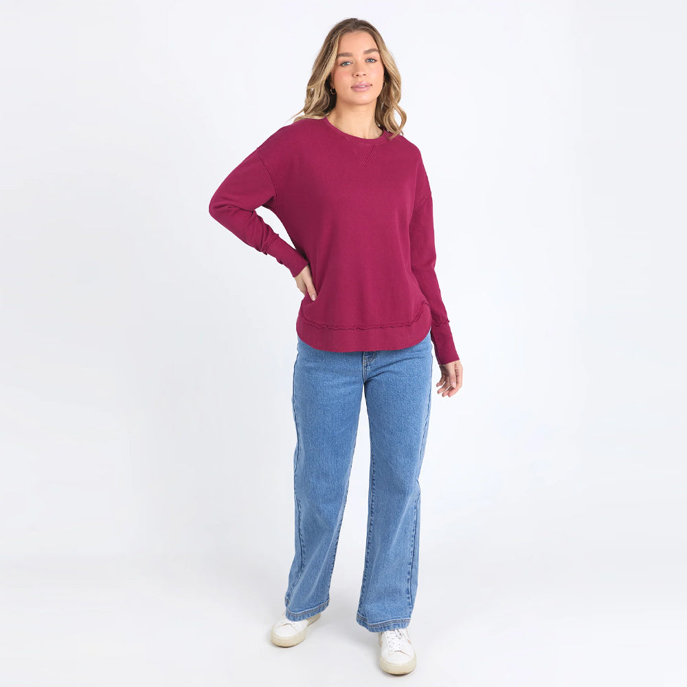 The Delilah Crew (Foxwood Clothing) is comfortable, casual and 100% cotton. The perfect addition to your everyday style! Featuring a crew neckline, curved hem and ribbed detailing, this relaxed fit, unbrushed fleece jumper will mix and match with all your wardrobe favourites.