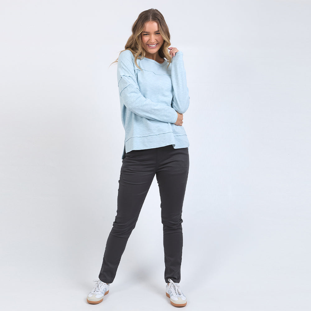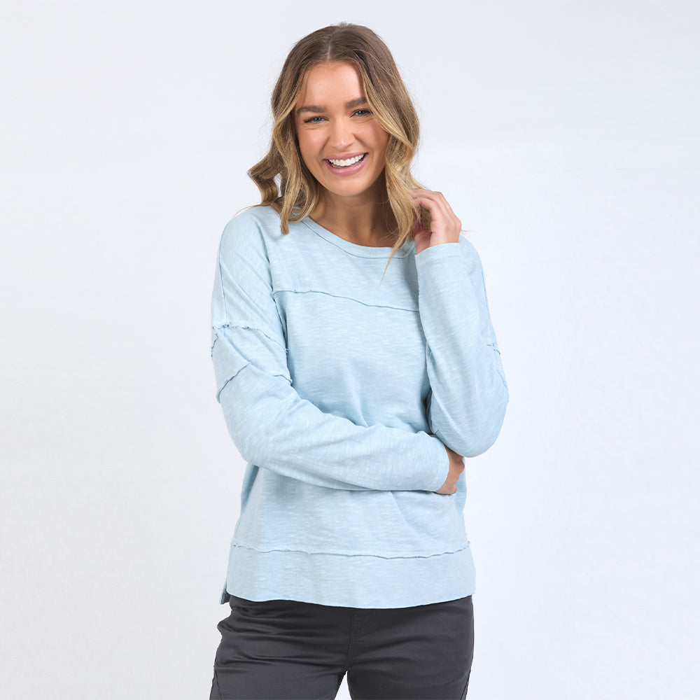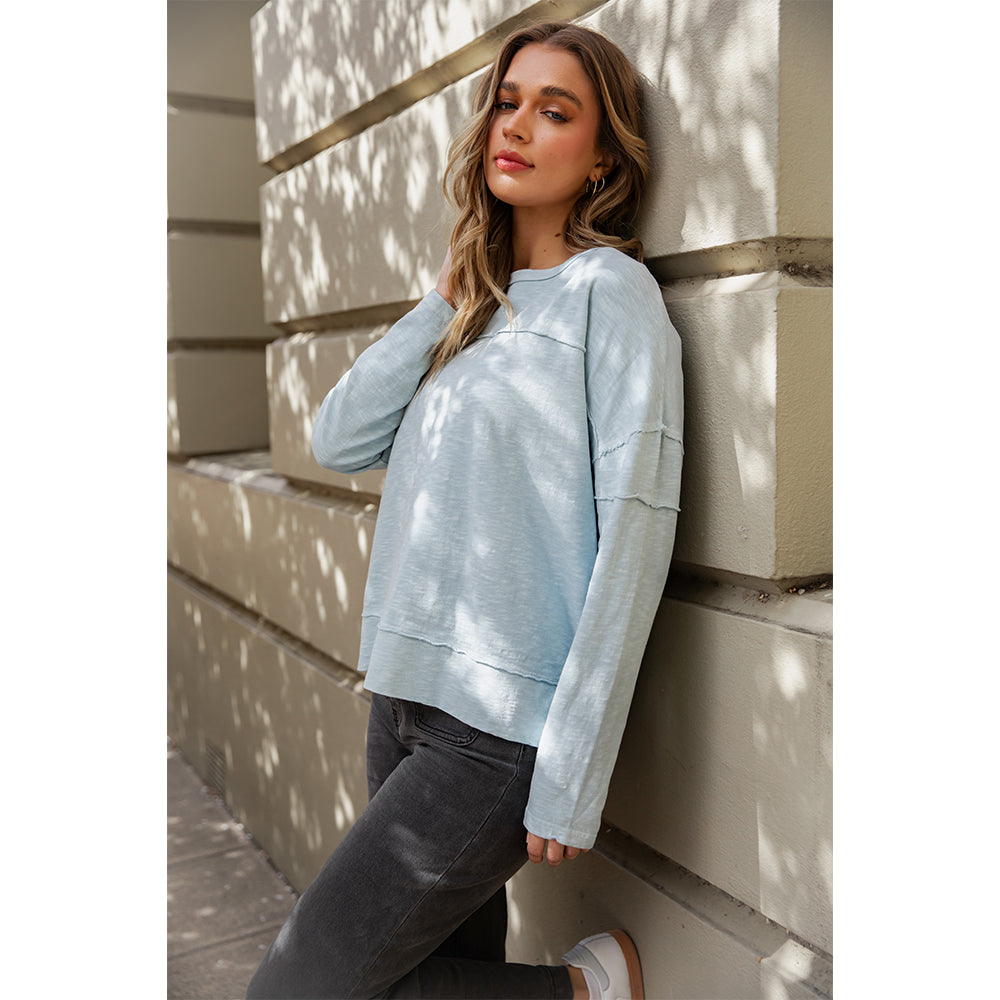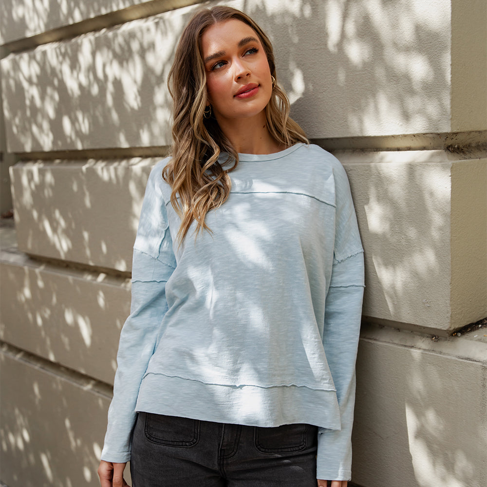 The Jayne Throw On Top (Foxwood Clothing) is the perfect lightweight long sleeve to take you through the seasons. Cut from a comfy, cotton slub jersey this women's top features a crew neck, trendy exposed stitching and side split hi-low hem. Seriously versatile we know you'll be wearing this on repeat.