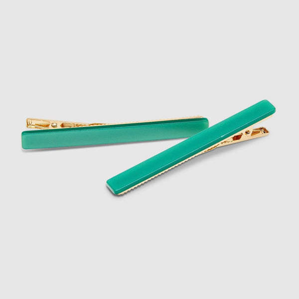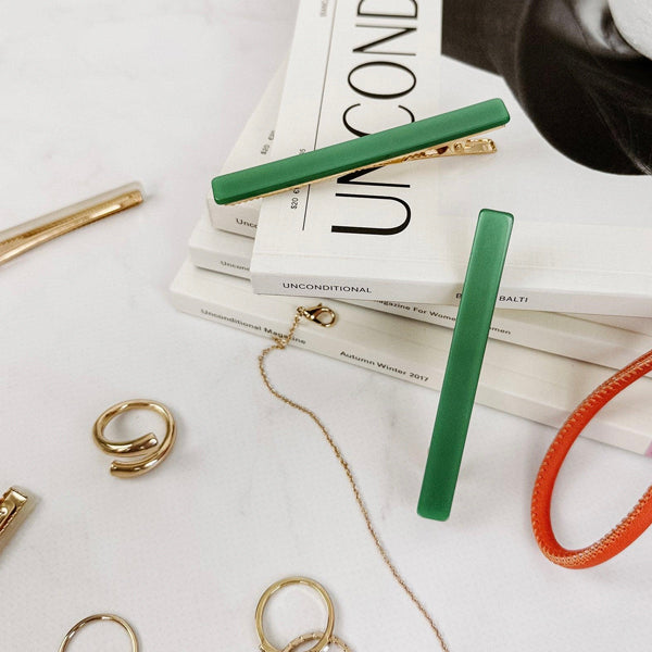 With two barrette clips included, you can effortlessly gather your hair and not have to worry about it falling out throughout the day. Pair our Leura Green Hair Clips with a statement earring for a bold yet refined look.