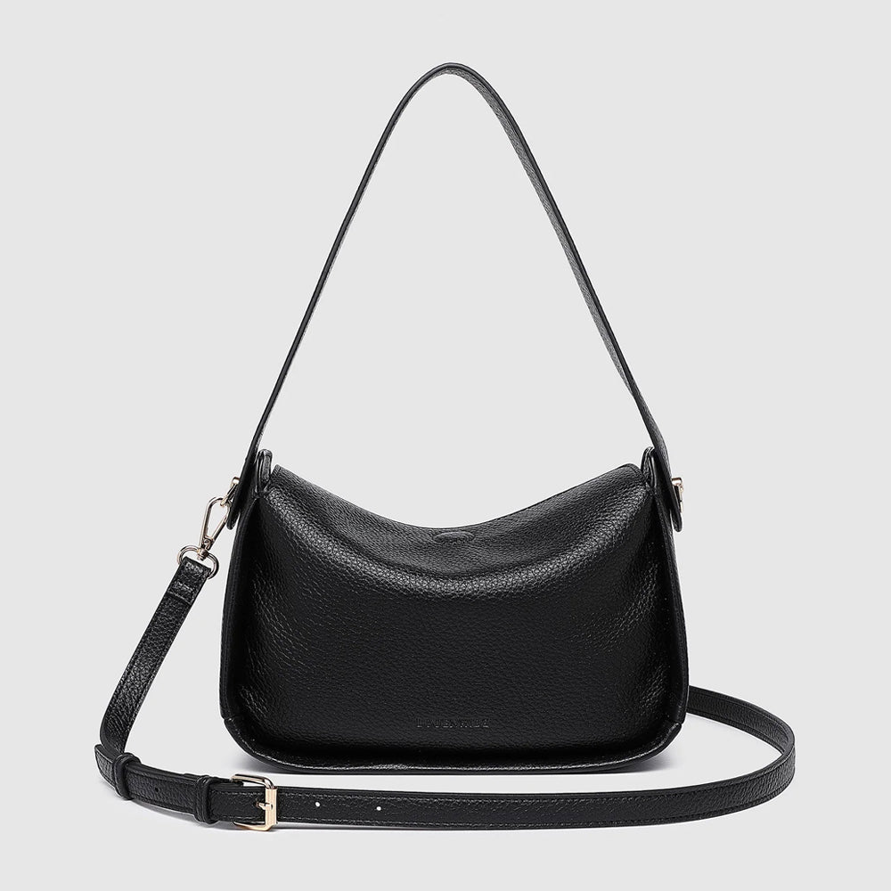 The Maddie Black Shoulder Bag is a timeless wardrobe staple, crafted for effortless versatility. Her sleek, minimal silhouette transitions seamlessly from day to night - wear her crossbody for a polished, hands-free look, or switch to the shorter strap for an elevated evening style.