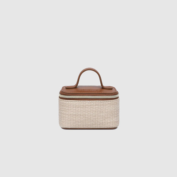 This compact travel jewellery case fits seamlessly into your luggage without taking up space. The secure zip closure ensures your jewellery stays protected, while the textured raffia and contrasting faux leather exterior add a touch of understated luxury to your travel style.