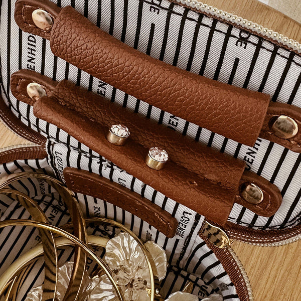 The Louenhide Trudy Jewellery Box in Natural Tan is the perfect solution to keeping your valuables safely organised on the go.