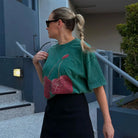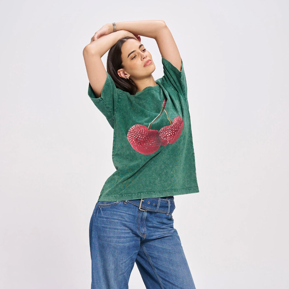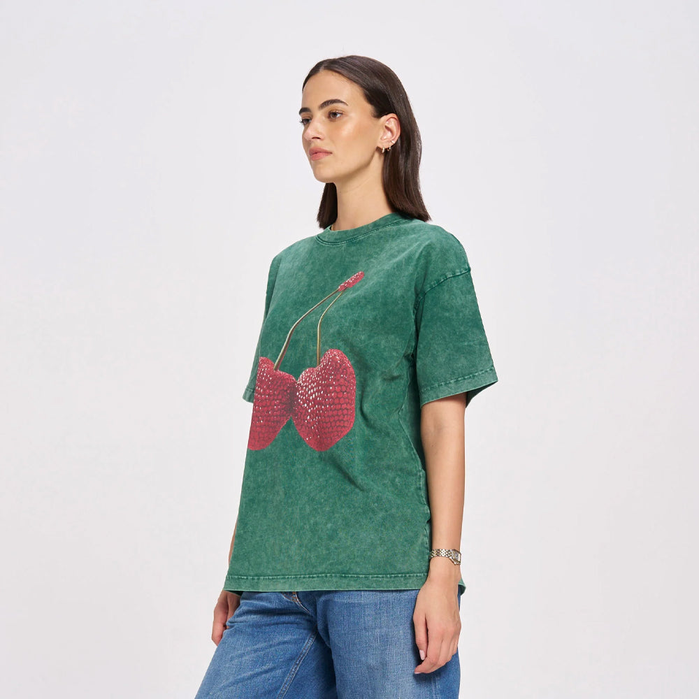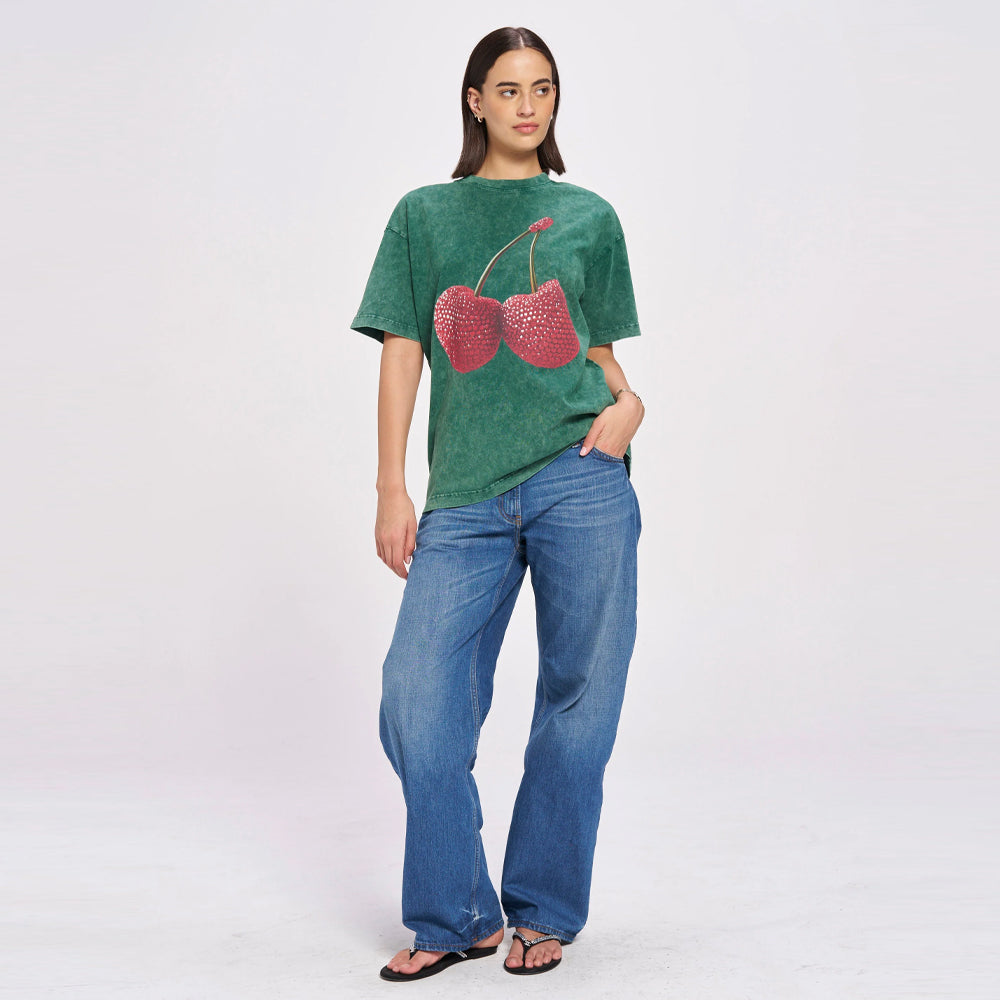 Cherry Baby Acid Wash Oversized Tee - Dark Green