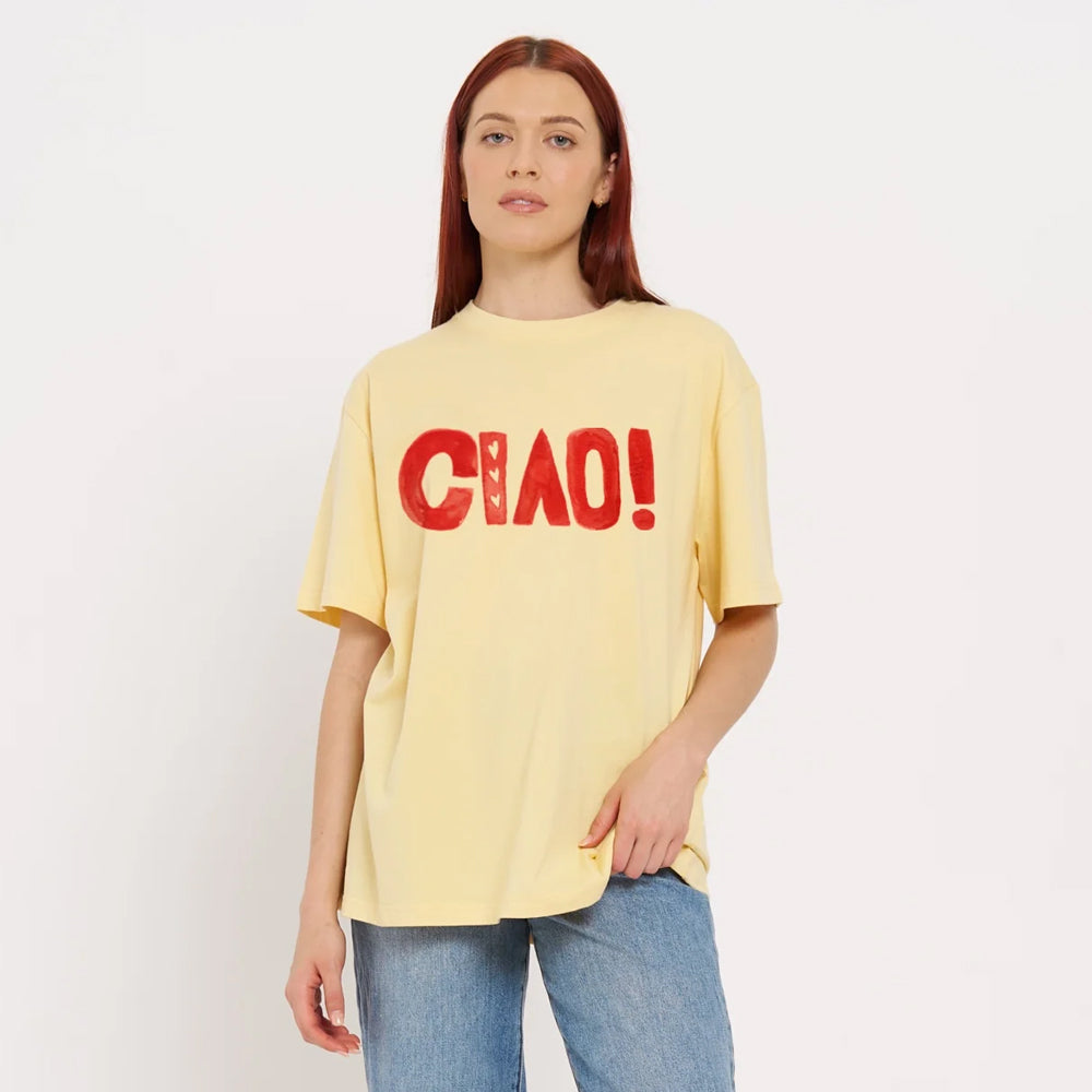 Ciao Tee (MAKU The Label) is a cult-favourite, crafted from 100% cotton, designed to last while offering a buttery-soft hand feel. The lightweight cotton is great for warmer climates or just if you run hot and prefer a lighter tee. The boyfriend tee is slightly oversized, not too long and a super soft vintage feel to it. We recommend choosing your normal size for the perfect fit.