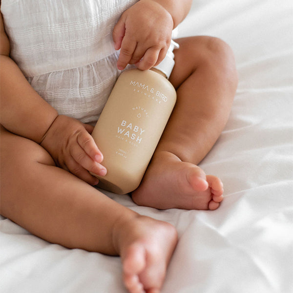 Create a calming bath time experience with our Mama + Bird gentle daily use Hair + Body Wash. Enriched with natural, botanical ingredients ideally suited to babies and children, the ultra-mild formula soothes and nourishes the skin and scalp.