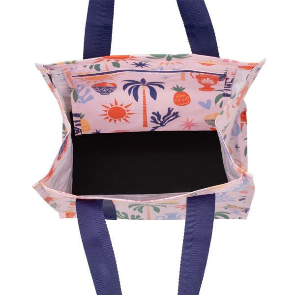 - Open top with internal zip pocket to hold your phone + shopping list!