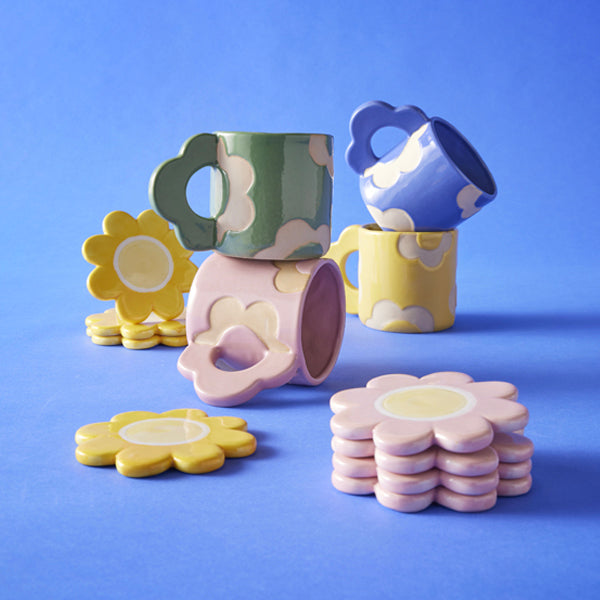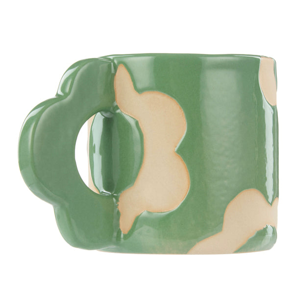 Made from stoneware with a fun green glaze, the Posey Flower Mug adds a pop of personality to your daily brew! Featuring a flower-shaped handle and textured floral design, it's boxed and ready for gifting.