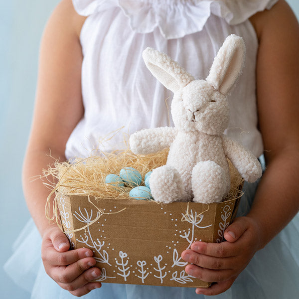 You know how Alice fell down the rabbit hole? Well, Bonnie fell up it. This cheeky soft toy rabbit was down in her burrow, just munching carrots with the other bunnies, when all of a sudden she bounced straight up & out into the middle of a suburban back garden. Inquisitive, energetic & heaps of fun, Bonnie's a blessing just waiting to bounce into your little one's life.