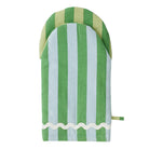 Featuring green and orange stripes with wavy ribbon detail, and a loop for handy hanging, this pretty mitt will keep you protected when handling hot pots, pans and trays.
