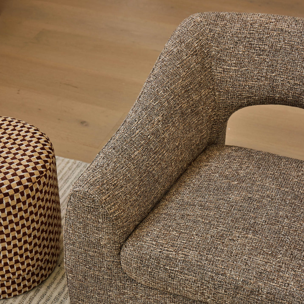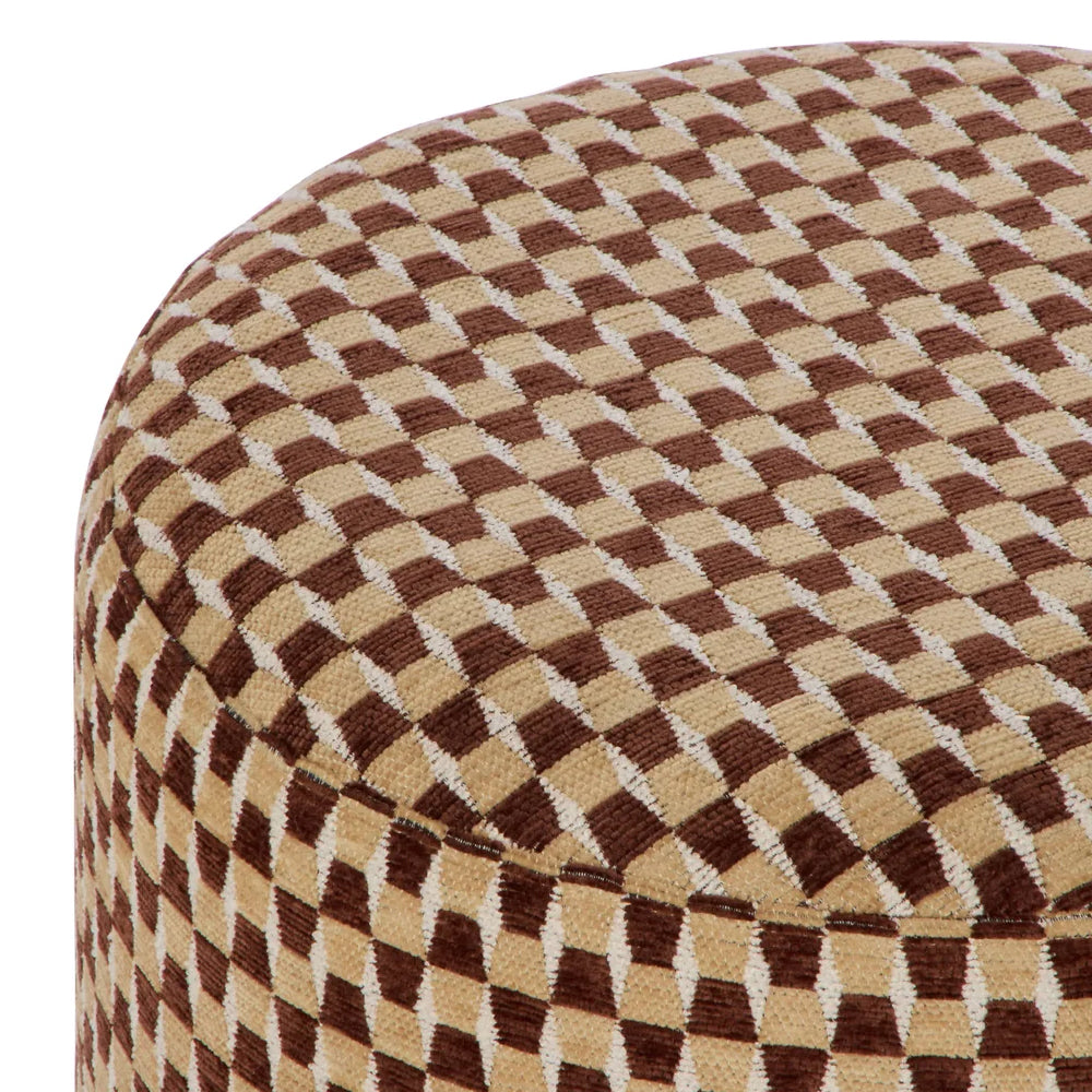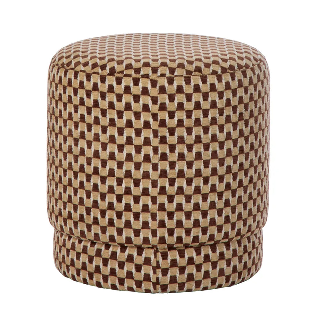Intricately designed with an all-over geometric pattern in rich chocolate and mustard, the Clark Stool brings a playful twist to a traditional design. Cushioned for comfort, the round silhouette softens the look, while the colourful palette brings a bold pop and statement feel to your space.