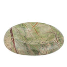 The Isobel Marble Bowl showcases striking brown veining through green marble, softened by its imperfect round shape. It features a shallow, off centre indent, giving the illusion of movement.