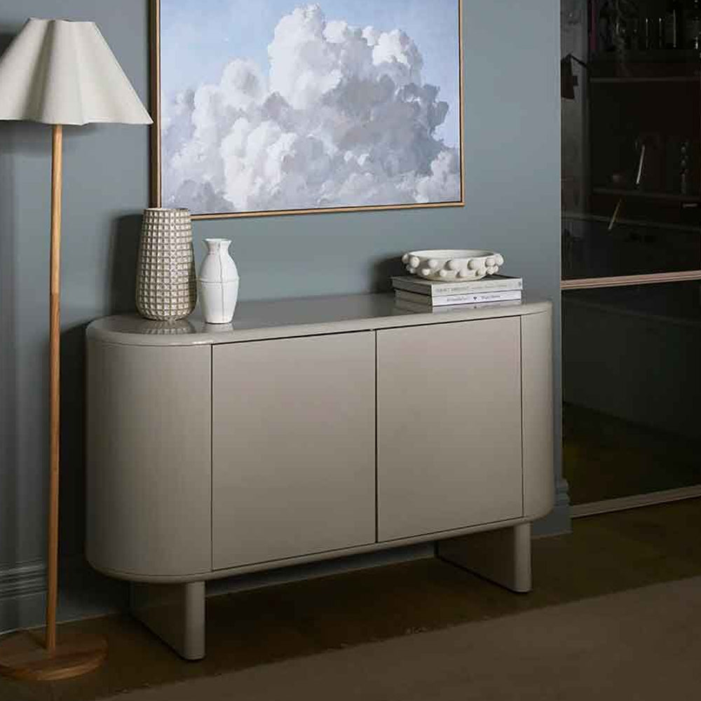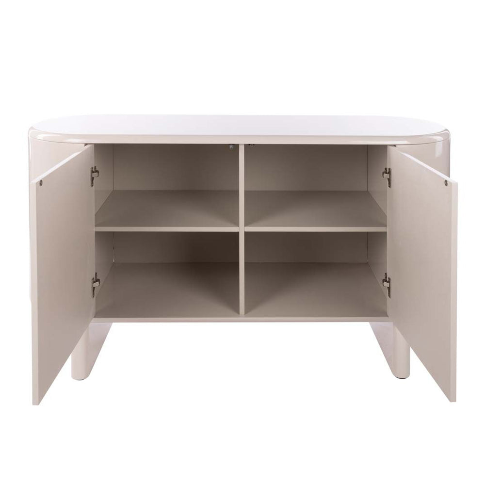 The Wade Buffet Unit adds instant sophistication to your home. Curved, rounded edges create a sleek aesthetic, with a high gloss oat finish for a contemporary look.