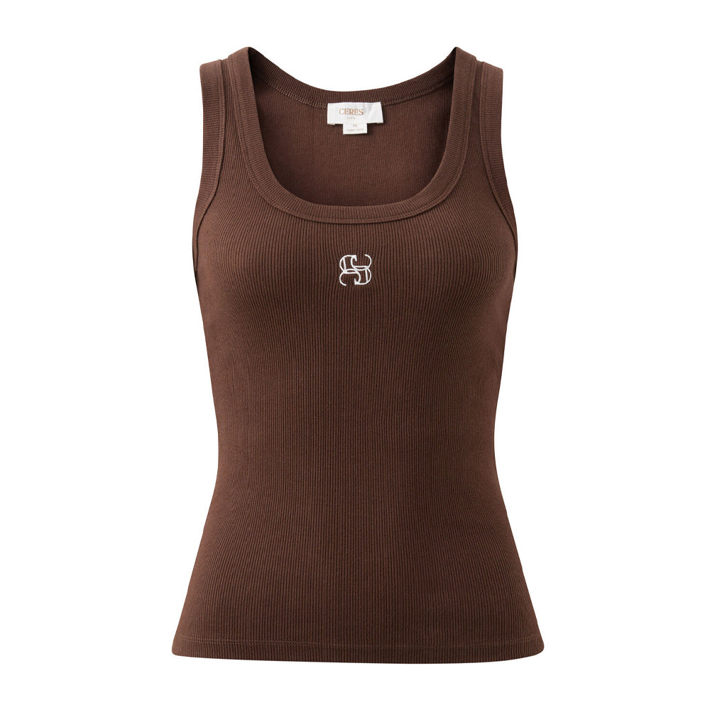 Zoe Contour Rib Scoop Tank - Chocolate Monogram Embroidery